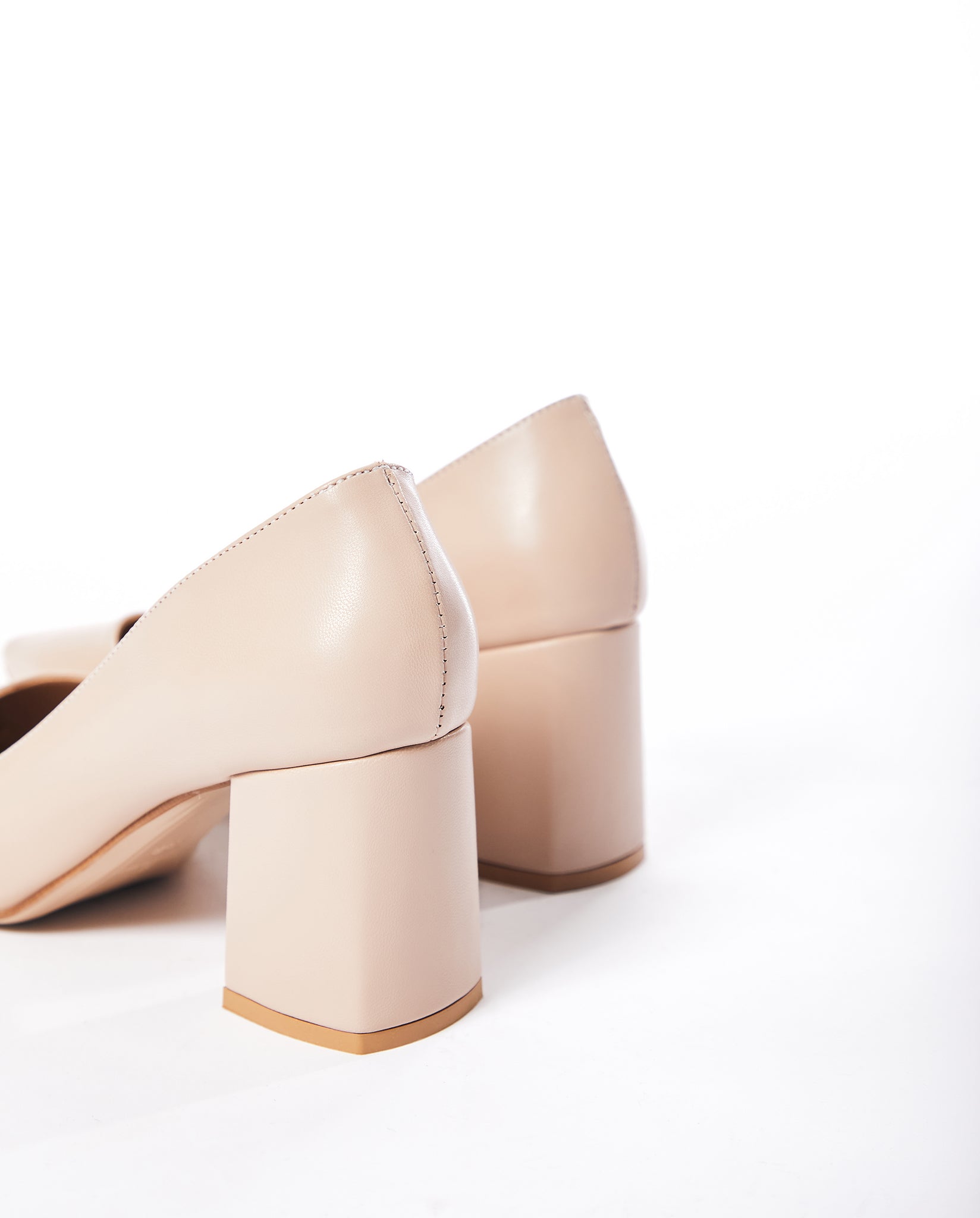 Nude pointed-toe block heels with a smooth finish, perfect for a polished and comfortable look suitable for both work and casual wear